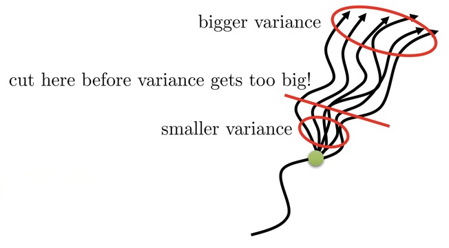 On the other hand, the variance that we get from the single sample estimator is also much more of a problem further into the future. It’s quite natural to understand.