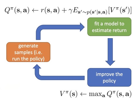 - set $Q(\mathbf{s}, \mathbf{a}) \leftarrow r(\mathbf{s},\mathbf{a}) + \gamma E[V(\mathbf{s}^\prime)]$